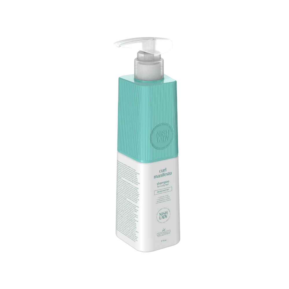 The Curl Manifesto Shampoo by NishLady is a gentle, sulfate-free cleanser specially formulated for curly, wavy, and coily hair.