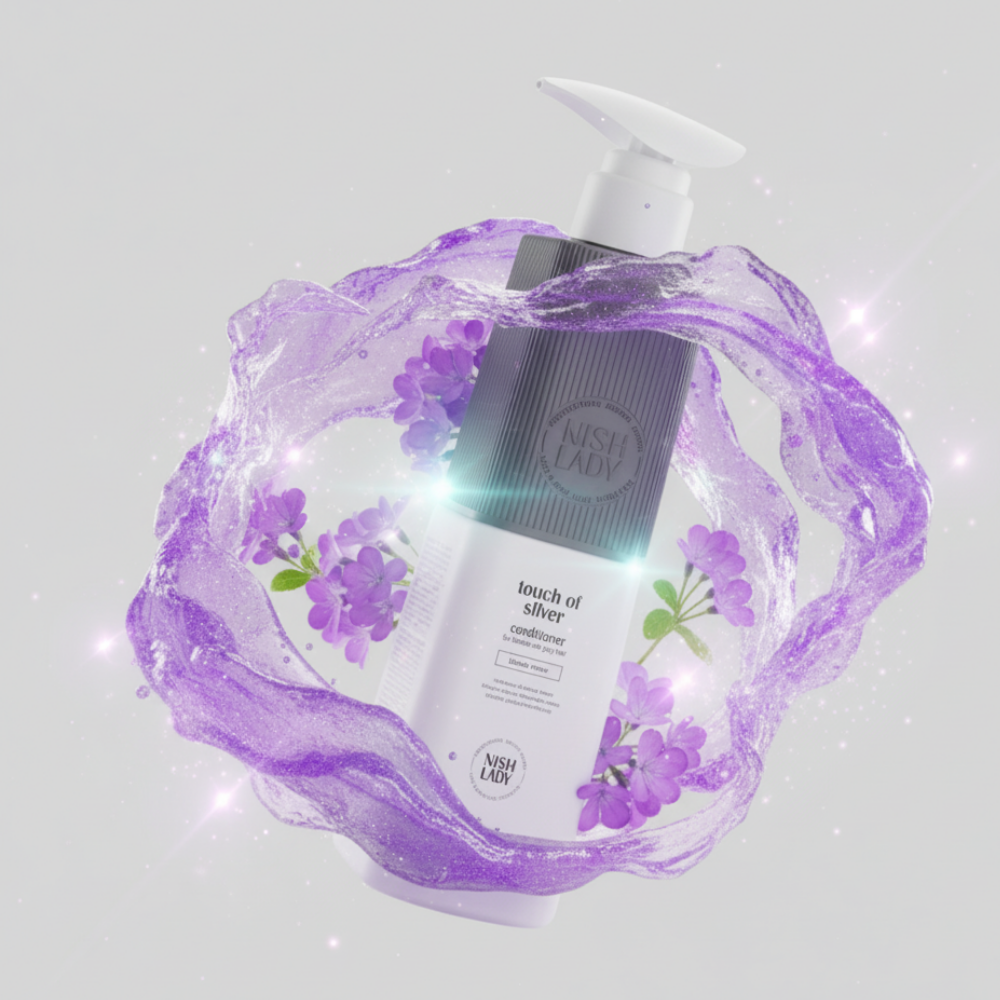 The NishLady Touch Of Silver Conditioner is a nourishing, toning conditioner formulated for blonde, bleached, silver, or grey hair. Designed to follow your toning shampoo, this conditioner enhances color clarity while delivering lightweight moisture and smoothness.